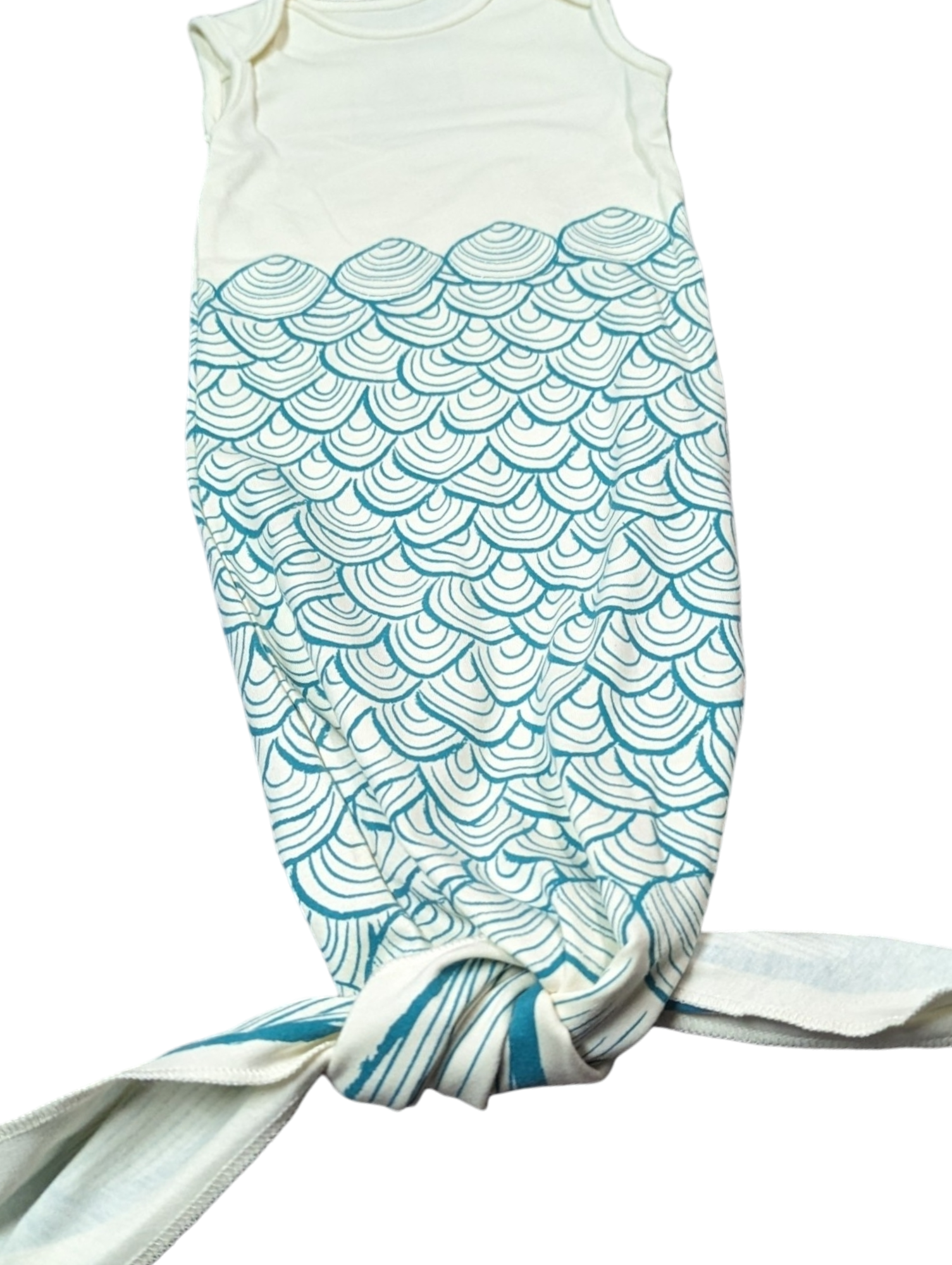 Ensemble adorablement confortable. Il se noue tout simplement dans le bas pour garder bébé au chaud et se dénoue en un tour de main pour un changement de couche élair! Les bouts des manches se retournent pour faire de petites mitaines pour éviter que bébé se grafigne!
