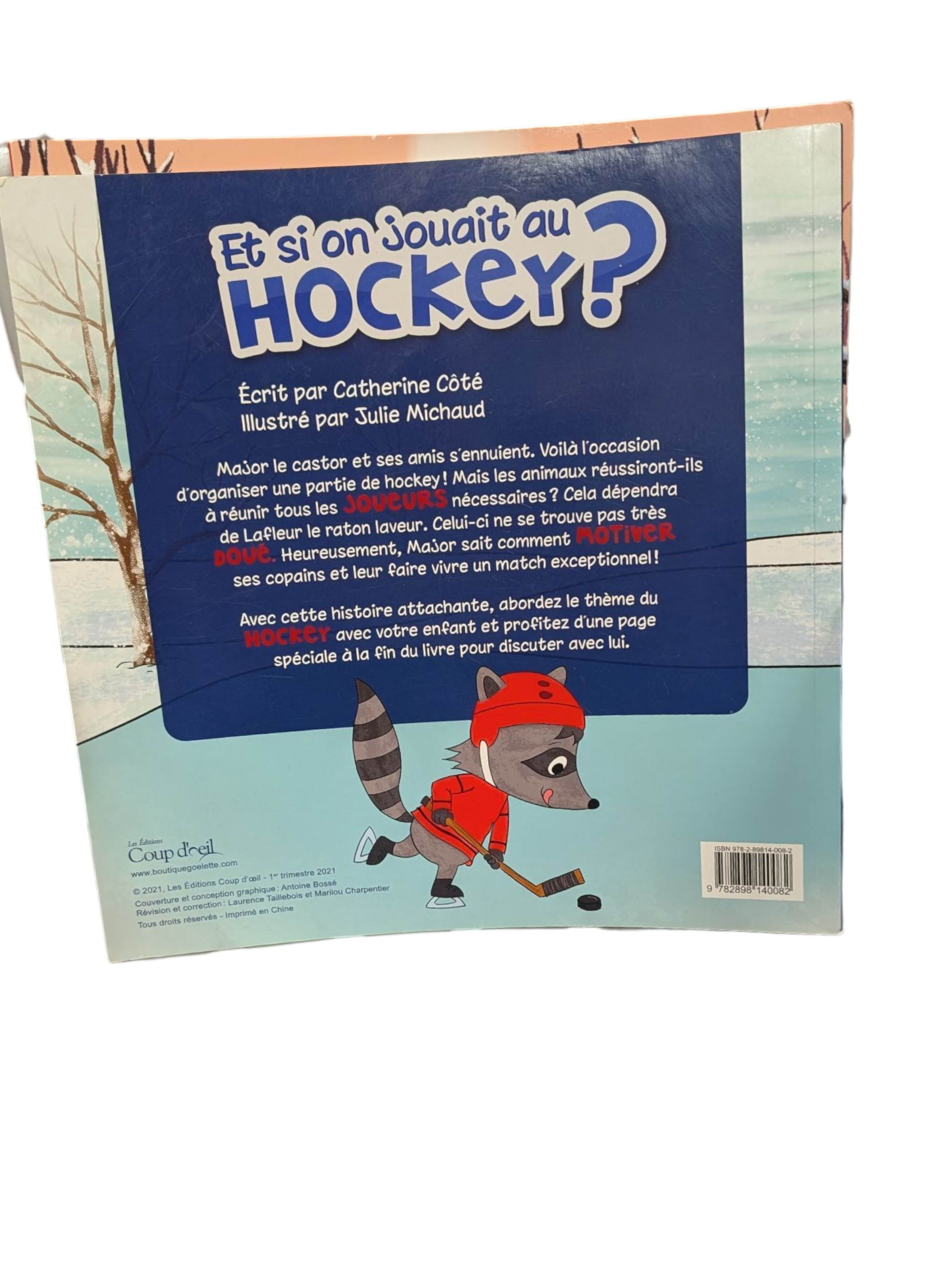 Major le castor et ses amis s’ennuient. Voilà l’occasion d’organiser une partie de hockey ! Mais les animaux réussiront-ils à réunir tous les joueurs nécessaires ? Cela dépendra de Lafleur le raton laveur. Celui-ci ne se trouve pas très doué. Heureusement, Major sait comment motiver ses copains et leur faire vivre un match exceptionnel ! Avec cette histoire attachante, abordez le thème du hockey avec votre enfant et profitez d’une page spéciale à la fin du livre pour discuter avec lui.