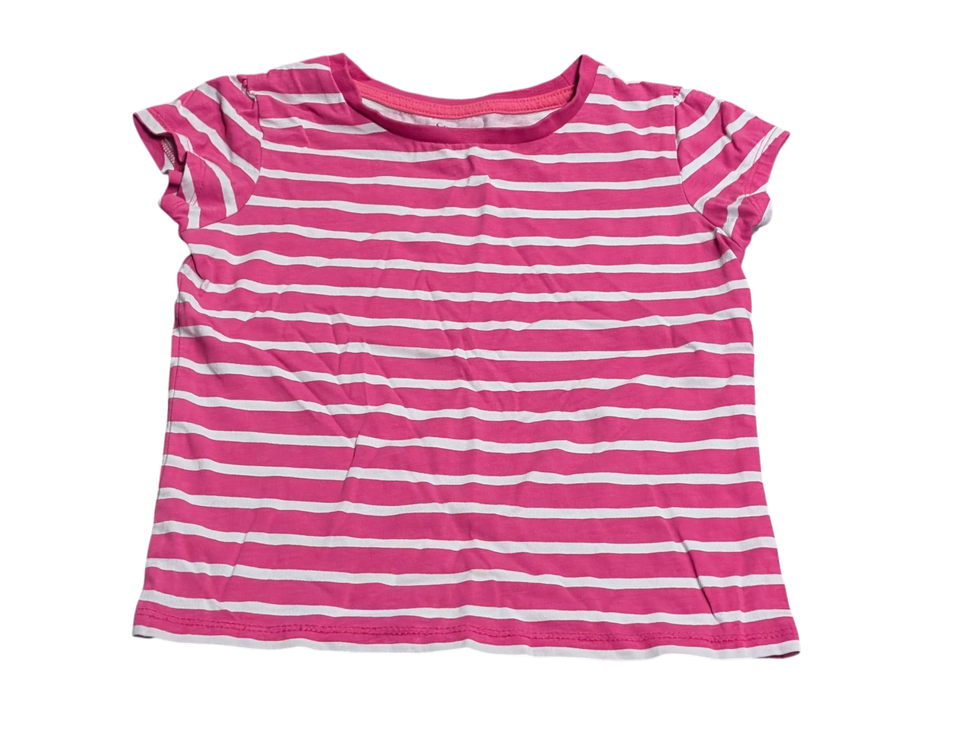 Chandail à manches courtes rayé rose et blanc en bon état.