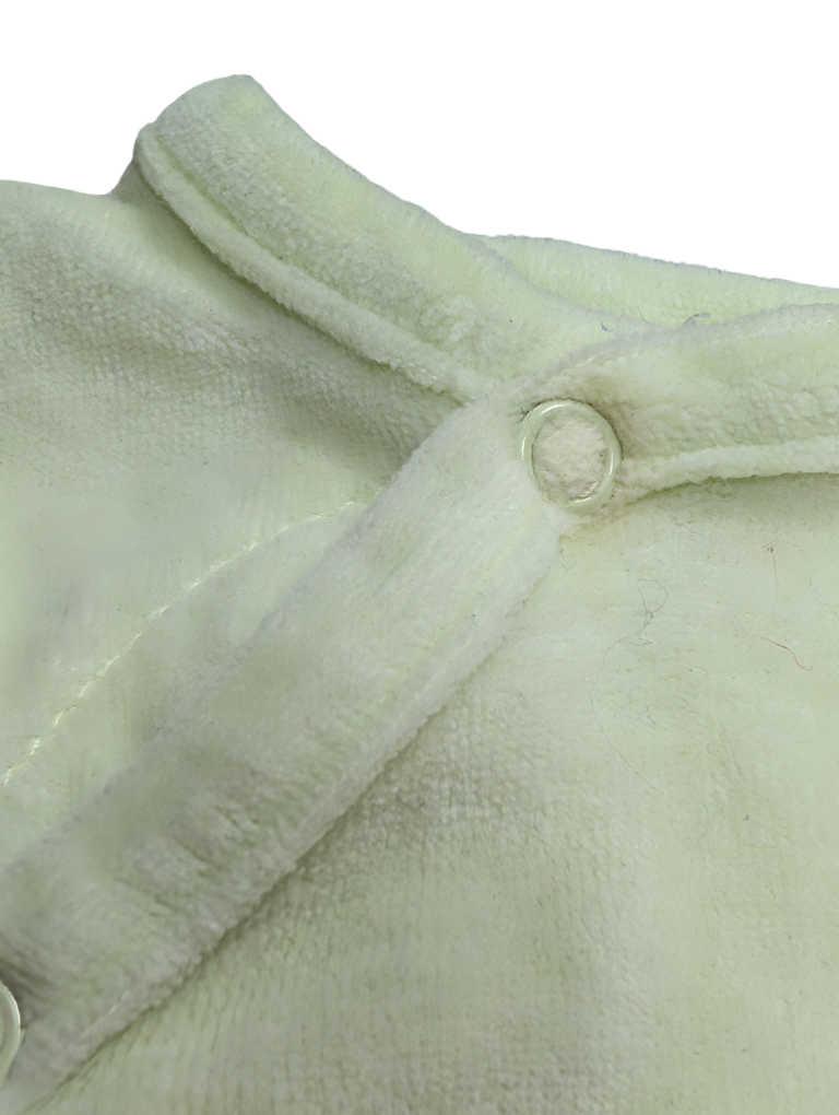 Pyjama manches longues, style velour. Voir bouton du haut légèrement imparfait, en bon état sinon