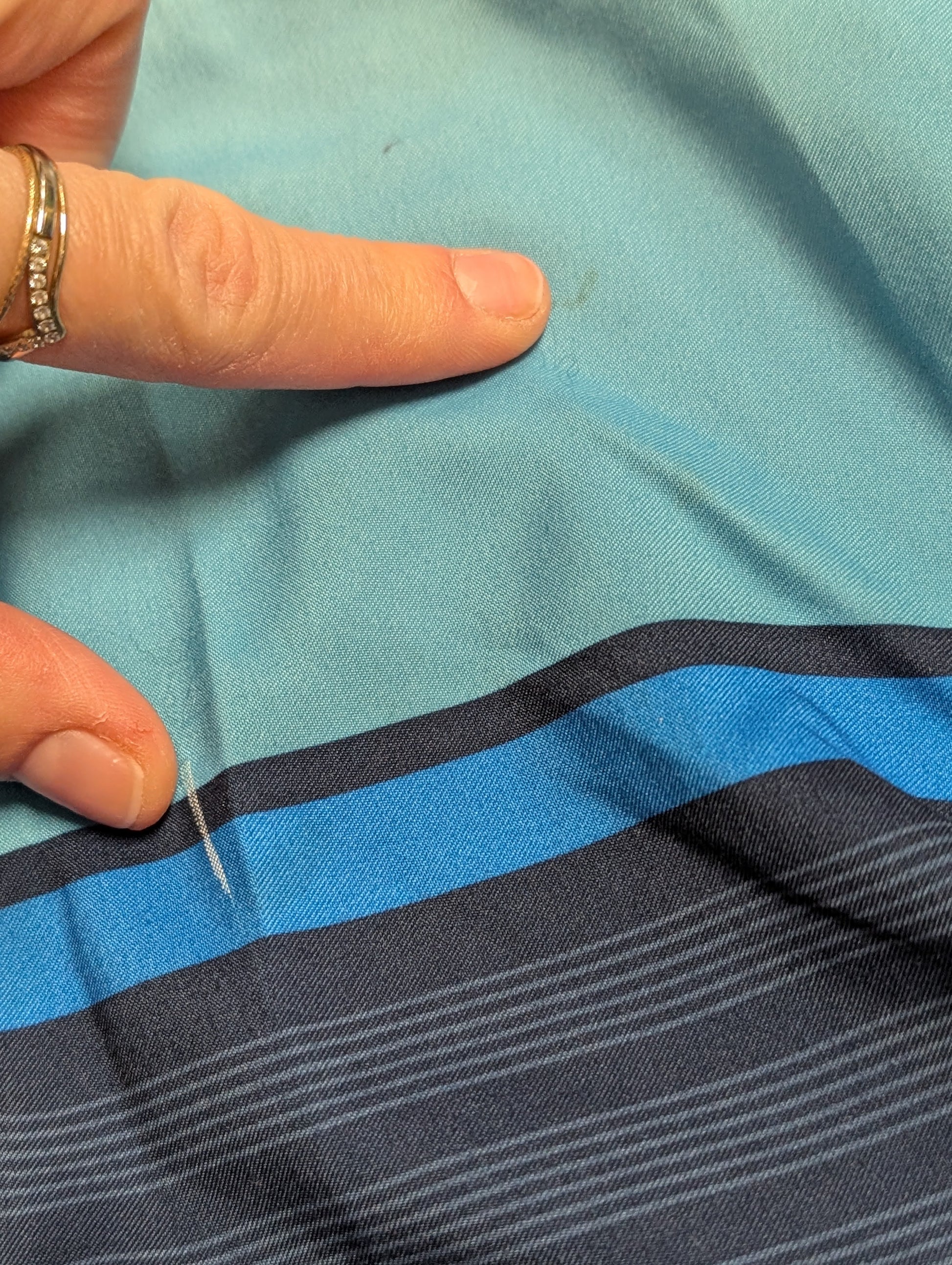 Short, tissus sport/maillot, saut de couture dans le bas et deux imparfaits aux fesses.